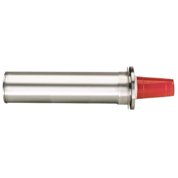 Cup Dispenser, includes (2) interchangeable silicone baffles, two springs (F & P), in-counter, holds 44 oz. to 64 oz. cups, rim dia. 4-1/2" - 5-1/4", ring bezel 7-3/8", cut-out 5-3/4", 22" under-counter length, stainless steel construction, for paper, plastic and foam cups in vertical, horizontal or angled mounting, NSF